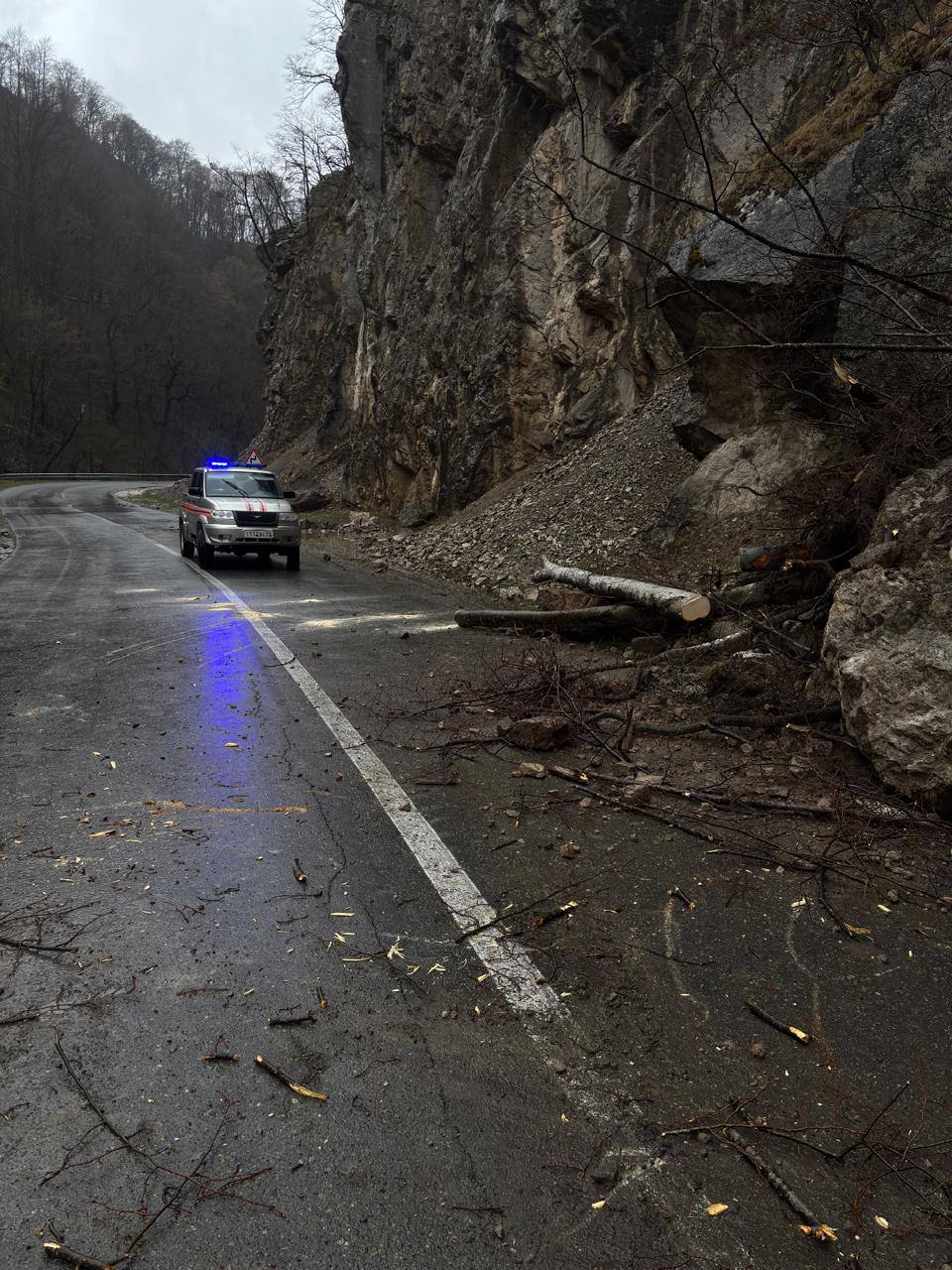 В 14:58 по мск 31.03.2026 года в центр обработки вызовов "Служба 112" поступило сообщение о том что в Ассинском ущелье случился оползень.