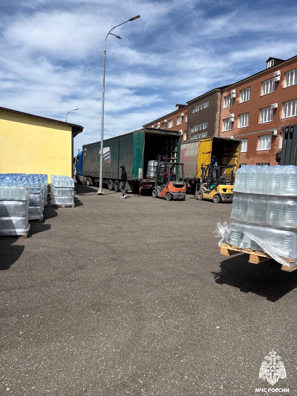 В рамках гуманитарной миссии из Ингушетии было отправлено два большегрузных автомобиля с жизненно необходимой продукцией. Общий объем доставленной питьевой воды составил 44 тысячи литров.