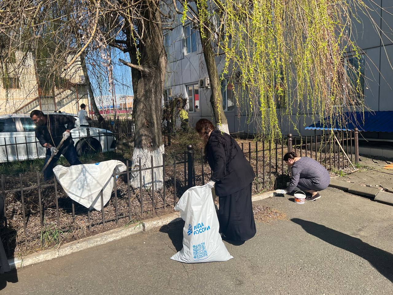 Взяв необходимый инвентарь, коллектив министерства дружно приступил к работе. Участники субботника убрали мусор и листья, подмели дорожки и привели в порядок дворовую зону.