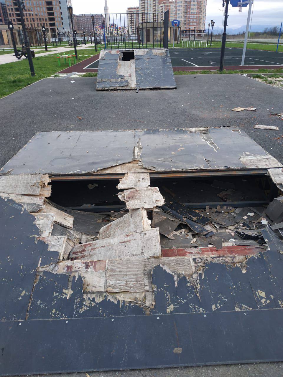 Даже новые детские площадки часто оказываются повреждёнными через короткое время.