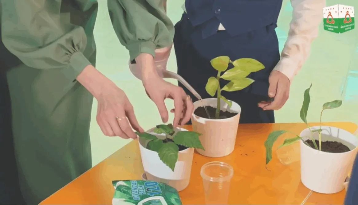 Ученики четвёртой школы села Сурхахи высадили цветы в горшках, узнали об основах ухода за растениями. Каждый участник забрал цветок в свой класс.