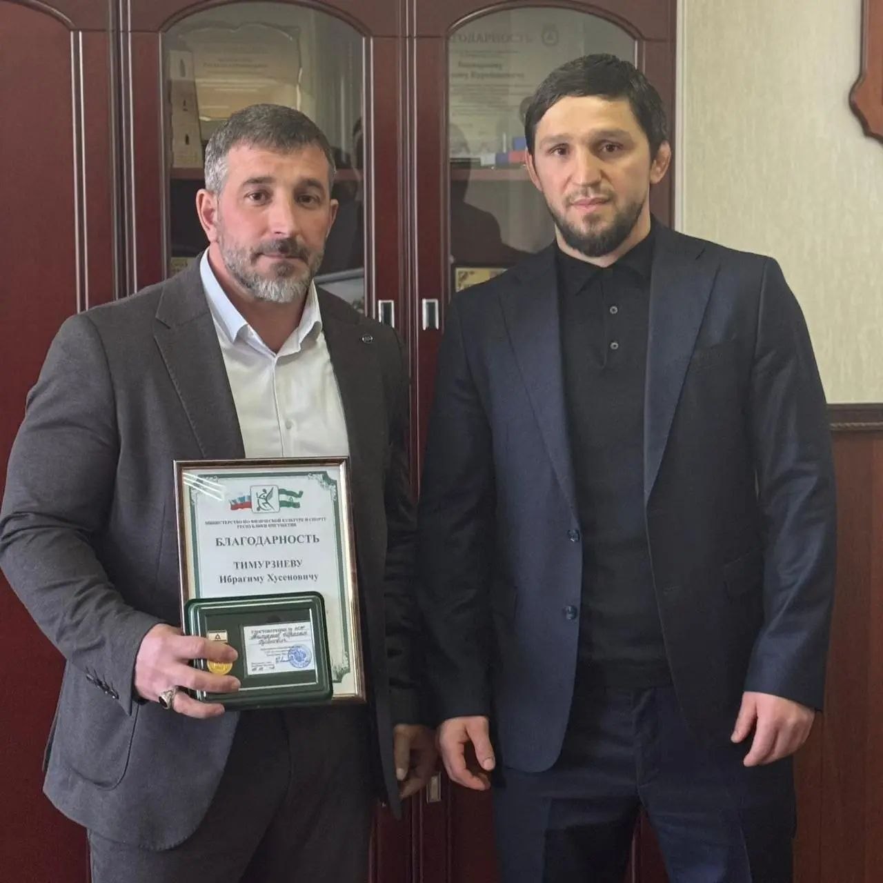 Министр спорта Руслан Белхороев вручил спортсмену благодарственное письмо и почётную медаль «100 лет государственности Республики Ингушетия».