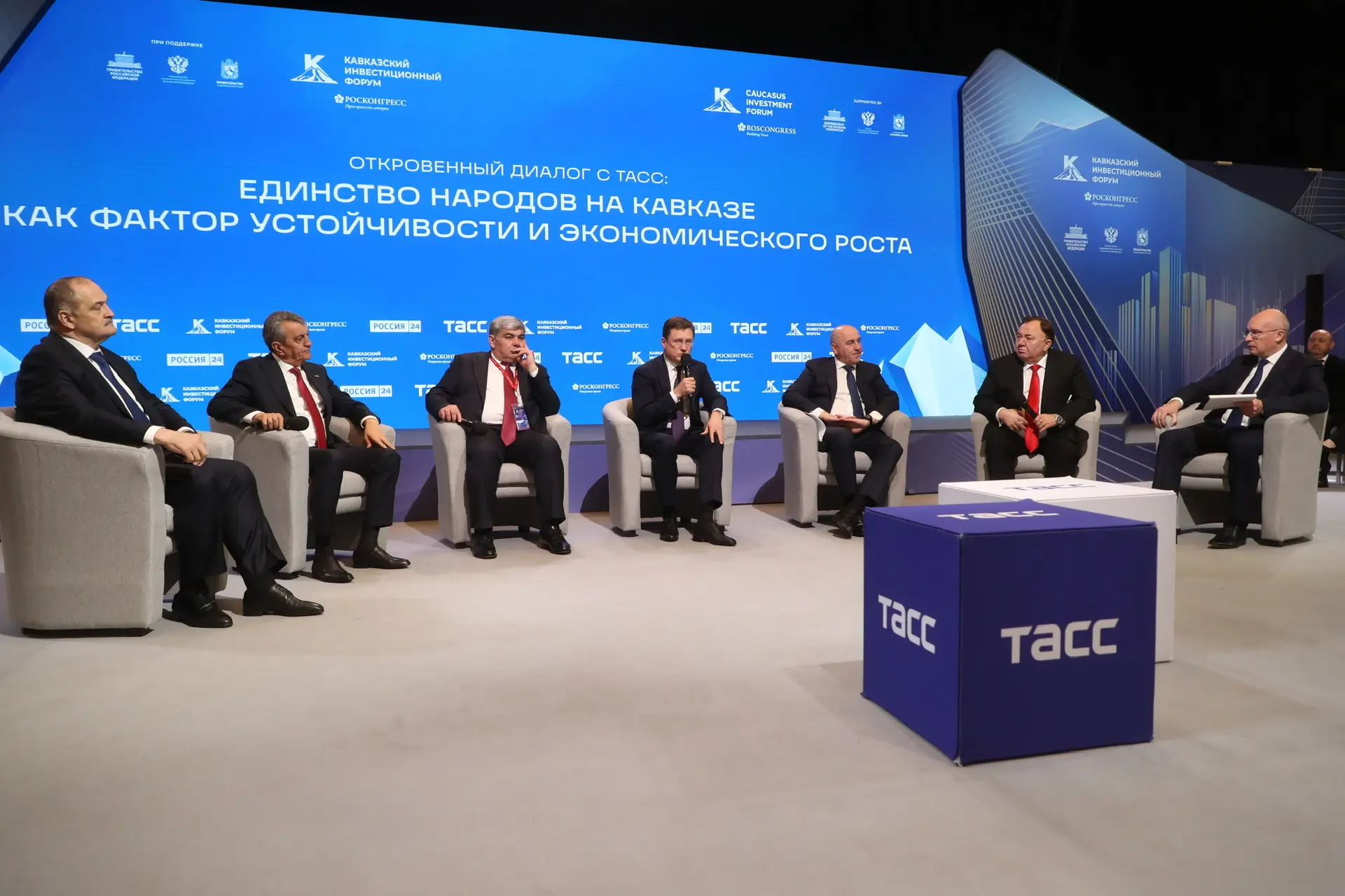 На площадке III Кавказского инвестиционного форума вместе со своими коллегами — главами регионов СКФО — принял участие в сессии «Откровенный диалог с ТАСС» на тему «Северный Кавказ: единство народов как фактор устойчивости и экономического роста». Она прошла под руководством заместителя Председателя Правительства России Александра Новака.