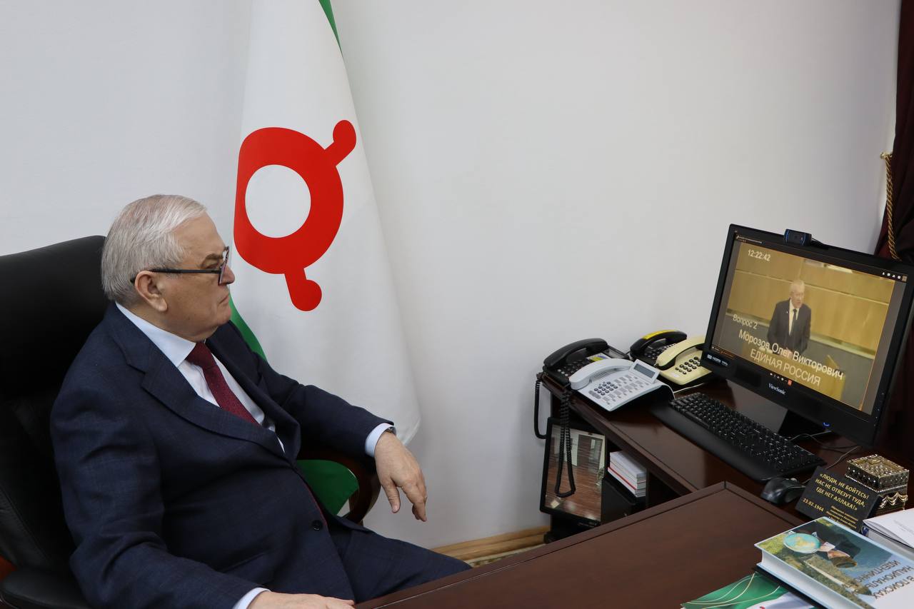 Председатель Народного Собрания Магомет Тумгоев в режиме ВС принял участие в заслушивании отчет Банка России о работе за 2025 год, которое состоялось в Государственной Думе
