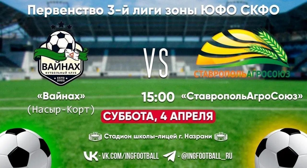 Матч пройдёт в субботу в 15:00 на стадионе школы-лицея в Назрани.