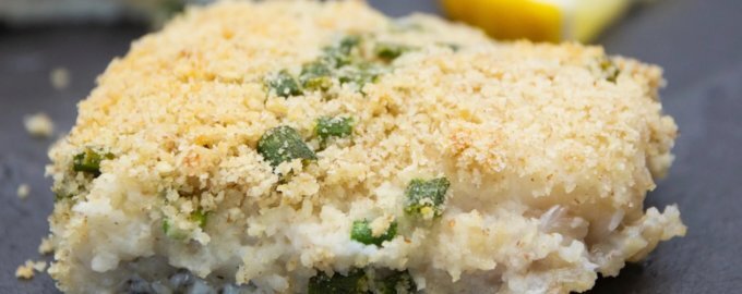 Переходя к соусу, лук нарезается на мелкие кубики и обжаривается на сливочном масле до легкого золотистого оттенка. Затем добавляется мука и всё вместе жарится около 2-3 минут, чтобы избавиться от сырого вкуса. Постепенно вводится молоко — масса тщательно перемешивается до исчезновения комочков и доводится до кипения. Здесь же добавляют лимонный сок, соль и перец по вкусу, а также тот самый рыбный бульон. На заключительном этапе в соус всыпают нарезанную треску и натёртый сыр. Получившаяся масса перекладывается в форму для запекания.