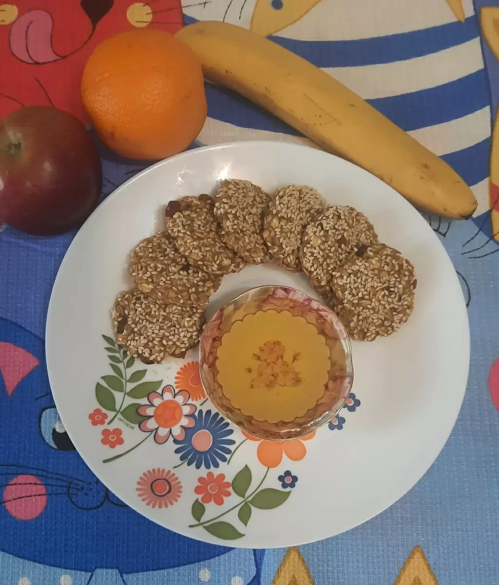 При желании добавьте горсть изюма для дополнительного вкуса. Формируйте печенье влажными руками и придайте ему желаемую форму, присыпая кунжутом сверху.