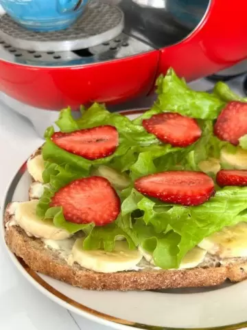 Одним из самых неоднозначных, но при этом удивительно вкусных завтраков является бутерброд из полбяного цельнозернового хлеба с домашним плавленым сыром, дополненный свежими фруктами: бананами и клубникой, а также хрустящими салатными листьями. Звучит странно? Но сочетание сливочного сыра с сочными ягодами и фруктами создает незабываемое гастрономическое наслаждение.