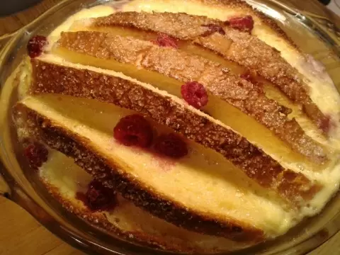 На следующем этапе можно добавить ванильный сахар и корицу для улучшения вкуса. После этого залейте хлеб этой смесью и дайте ему пропитаться в течение 10 минут. Тем временем разогрейте духовку до 180 градусов.