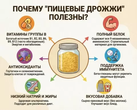Пищевые дрожжи — это богатый источник витаминов группы B, особенно B12, что делает их важным продуктом для вегетарианцев и веганов. Кроме того, в них содержатся растительные белки и цинк, и всё это без добавок и химии. Они могут стать отличным дополнением к любому рациону и блюдам, принося пользу и насыщая организм необходимыми микроэлементами.