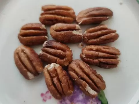 - Карамелизированный пекан с кленовым сиропом: Обжарьте 200 граммов пики, добавьте 80 мл кленового сиропа и немного соли.
