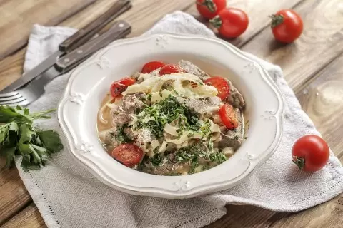 Предлагаем вам восхитительный рецепт тальятелле с говядиной и помидорами черри, который не оставит равнодушным ни одного гурмана. Это блюдо отлично подходит для романтического ужина или дружеской встречи, его легко подготовить в домашних условиях.