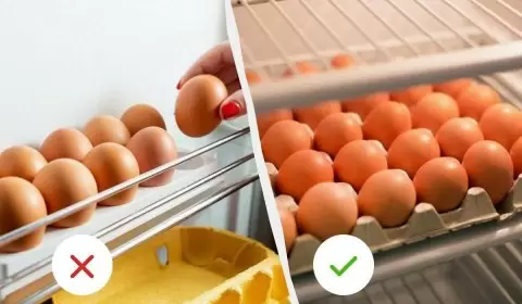 Следует также учесть, что не стоит ставить яйца на дверцу холодильника: лучше разместить их на внутренней полке, чтобы избежать колебаний температуры.
