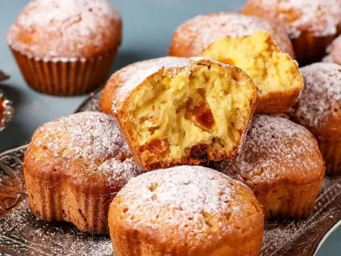 Эти кексы пленяют своим мягким и упругим мякишем, который приятно ощущается под пальцами. Внутри они остаются сочными и не липкими, а добавление кураги дарит яркие сладкие акценты, делающие каждый укус уникальным. Аромат апельсиновой цедры нежно окутывает блюдо, вызывая аппетит еще до первого укуса. Умеренное количество сахара не перегружает вкус, позволяя желание попробовать второй кексику.