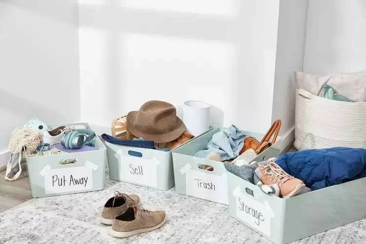 Ключом к успешному расхламлению является использование четырех коробок, в которые следует перераспределить имеющиеся вещи. Эти коробки можно заменить контейнерами или даже мешками. Каждой из них присваивается своя функция: