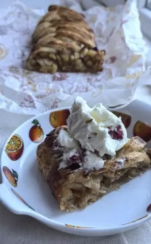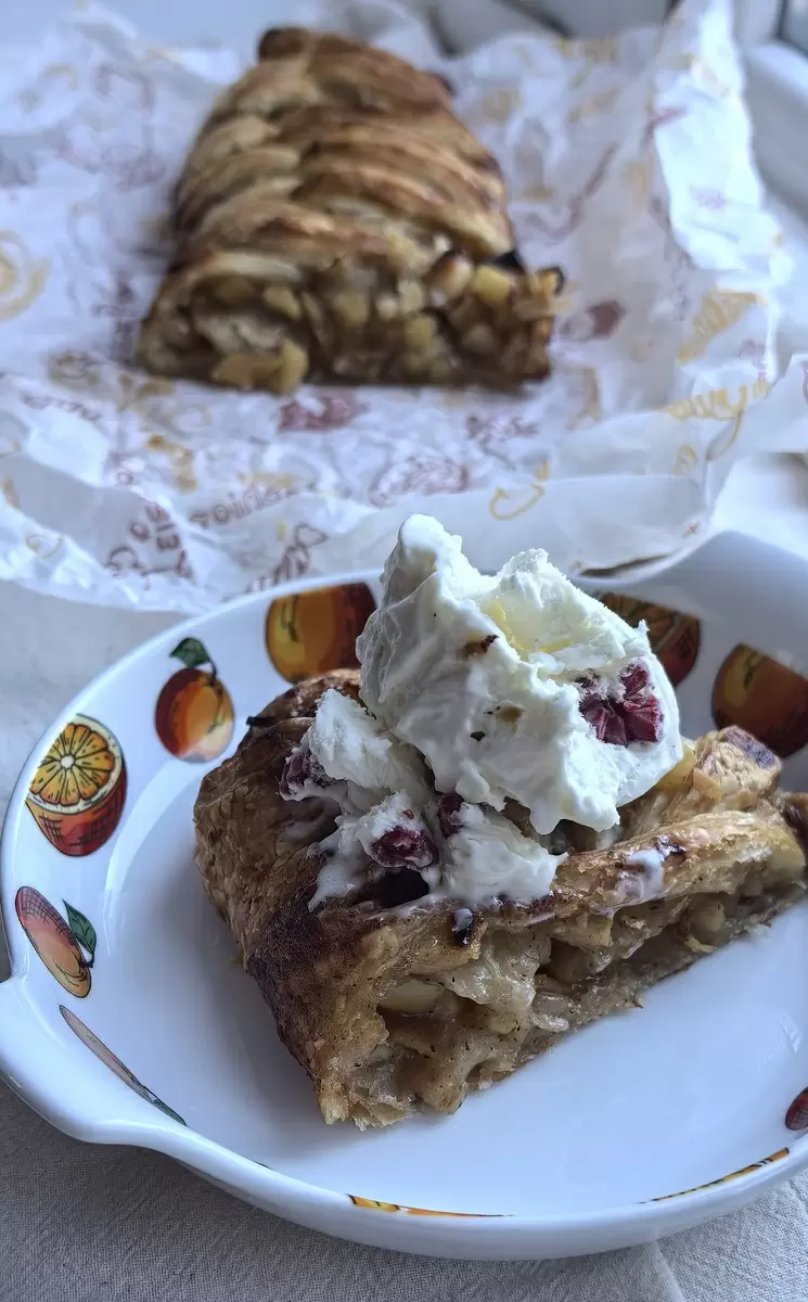 Стоит дождаться момента, когда пирог заморозится на 5 минут, после чего его легко нарезать и подавать с шариком холодного ванильного мороженого. Эта встреча горячего и холодного — нечто большее, чем просто завтрак, это маленькое чудо, поощряющее начать день с позитивной нотки.