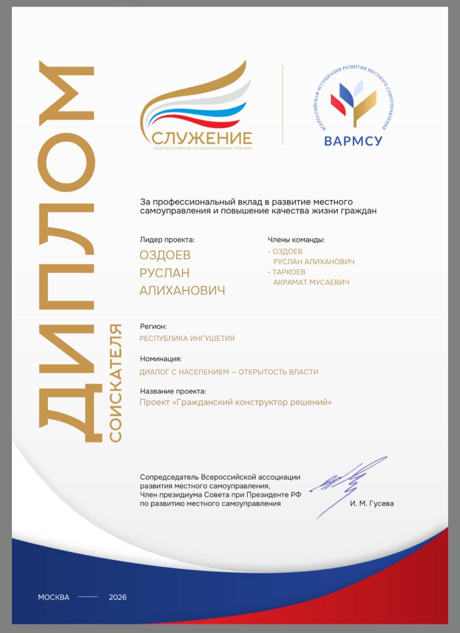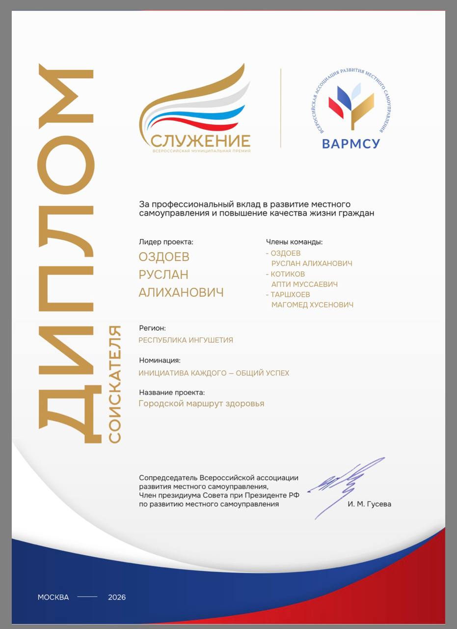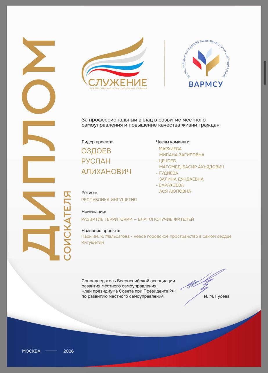 Участие в премии «Служение» подтверждает: Назрань уверенно движется вперёд, внедряя современные решения и формируя комфортную городскую среду.
