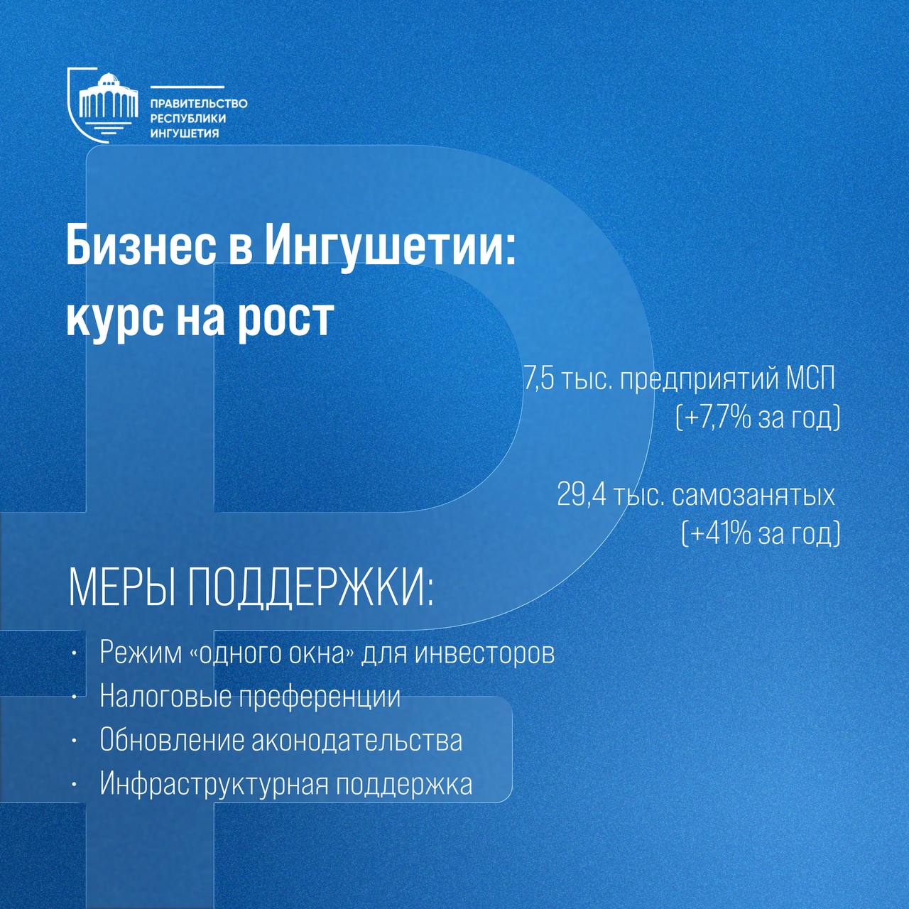 Правительство Ингушетии продолжает курс на улучшение инвестиционного климата и расширение частного сектора экономики.