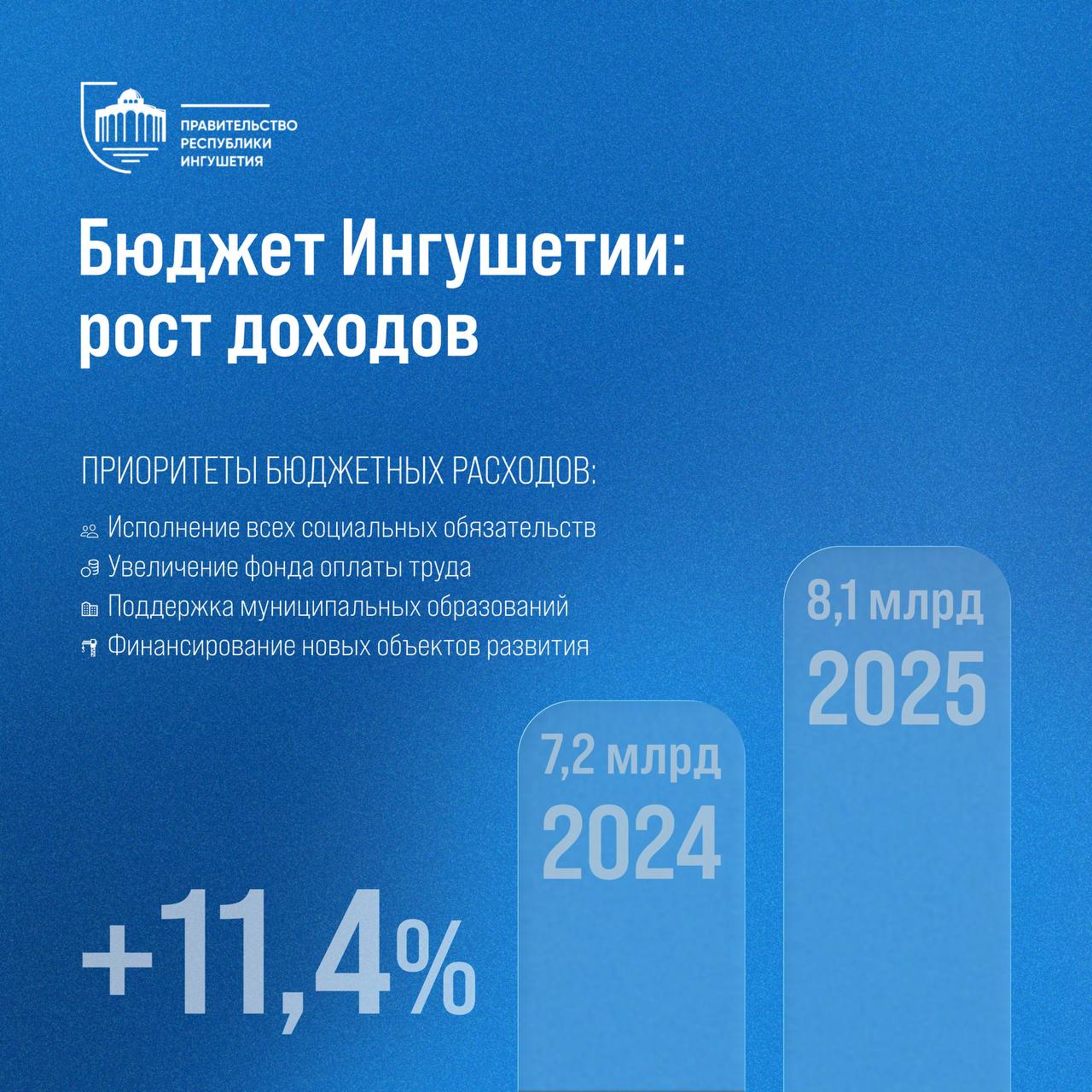Налоговые и неналоговые доходы республиканского бюджета составили 8,1 млрд рублей против 7,2 млрд рублей в 2024 году.