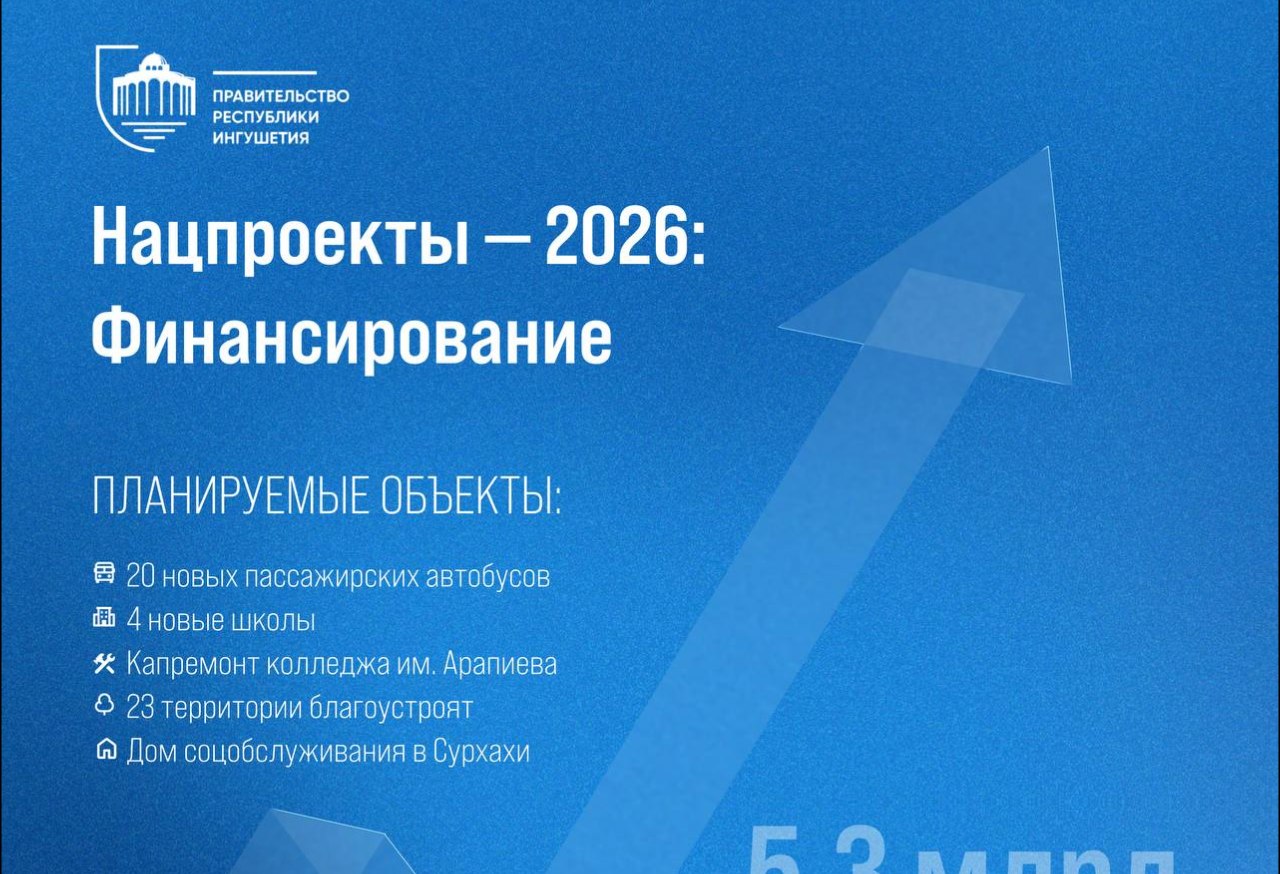 В 2026 году Ингушетия направит на реализацию национальных проектов рекордные 5,3 млрд рублей. По словам премьер-министра республики Владимира Сластенина, бюджет нацпроектов вырос на 30% в сравнении с предыдущим периодом.