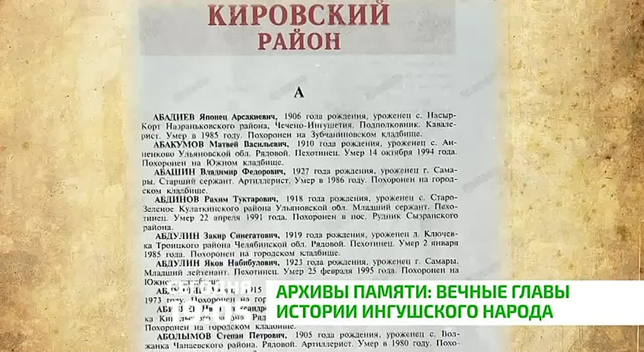 Ингушетия». Более двух тысяч семисот имён участников Великой Отечественной войны - результат многолетней работы с архивами Министерства обороны и электронными базами данных.