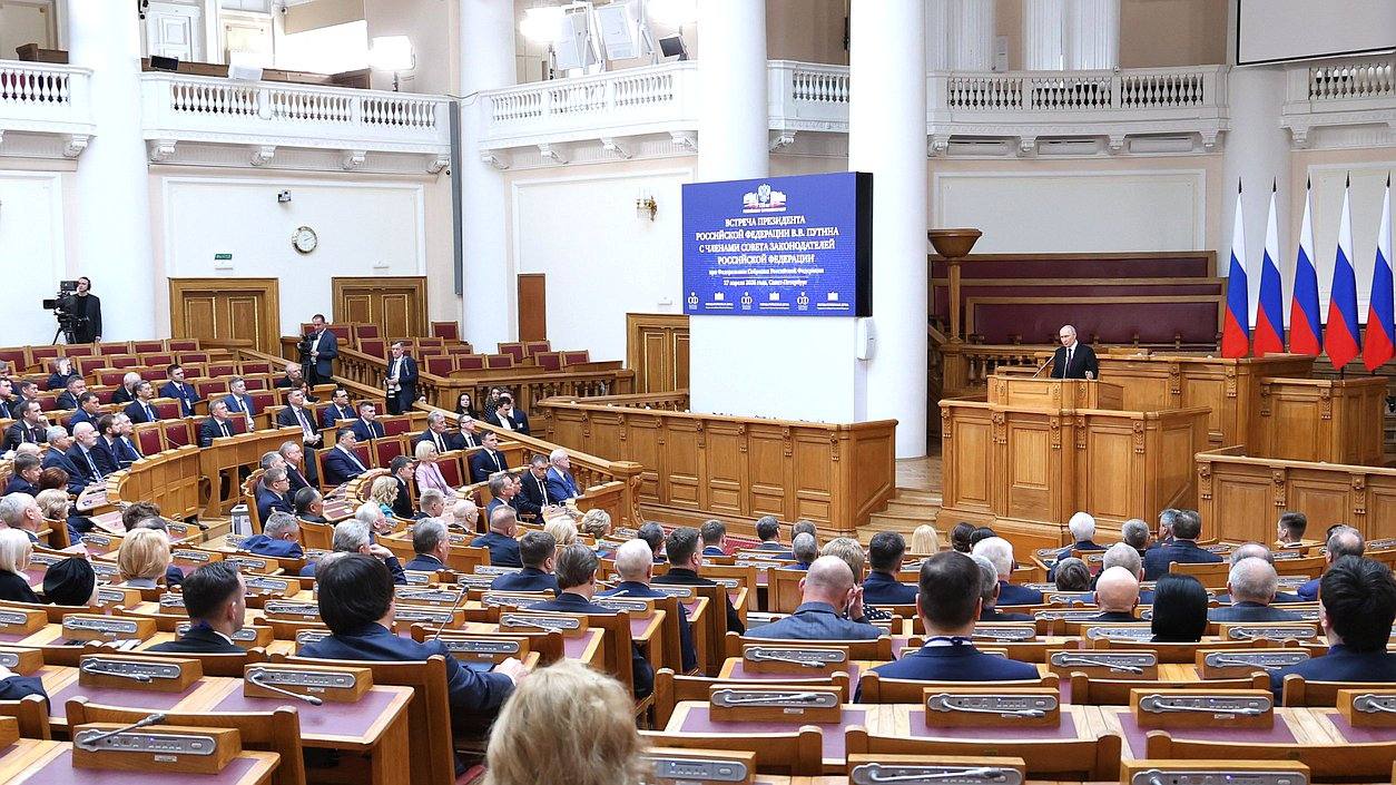 Президент Российской Федерации Владимир Путин встретился с членами Совета законодателей РФ при Федеральном Собрании